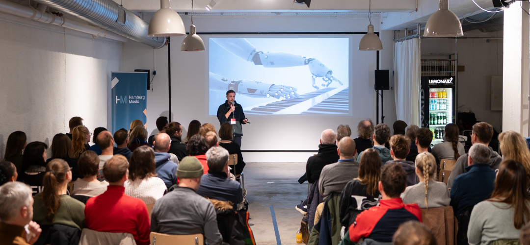 Unser EU-Projekt MI-RAP widmet sich der Resilienz und Zukunftsfähigkeit der Branche. In diesem Rahmen haben wir ein umfassendes Maßnahmenpaket geschnürt, um die Hamburger Musikwirtschaft fit für die Zukunft zu machen. Das Angebot reichte vom strategischen „Innovation Coaching“ bis zu fachspezifischen Networking-Events. Im Mai fiel dabei der Startschuss für unser Trainingsprogramm „AI@Work“: Mit dem ersten Workshop legten wir den Fokus auf praxisnahes Know-how und konkrete Anwendungsbeispiele für den Arbeitsalltag mit Künstlicher Intelligenz.